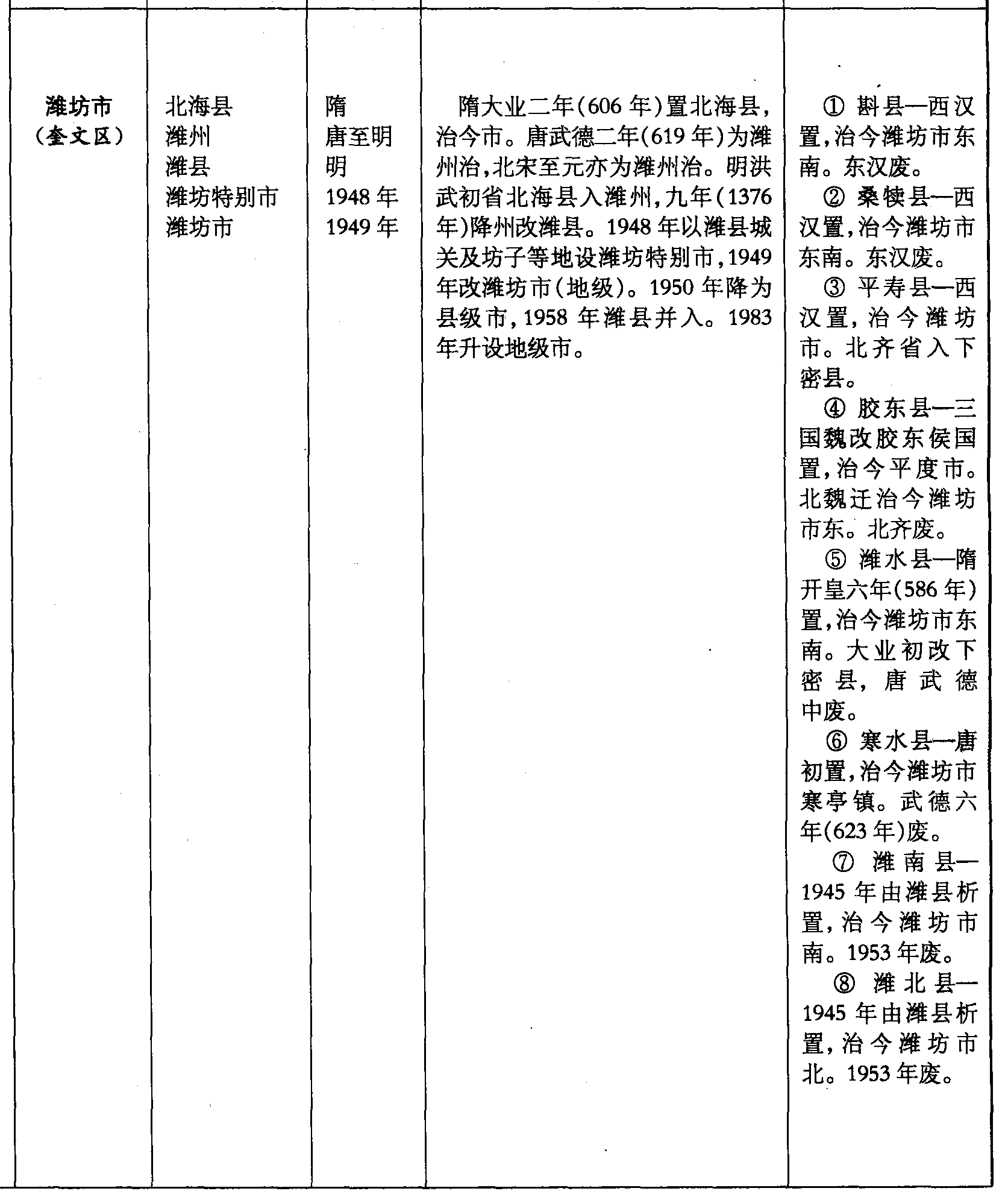❼ 潍南县—1945年由潍县析置,治今潍坊市南。1953年废。