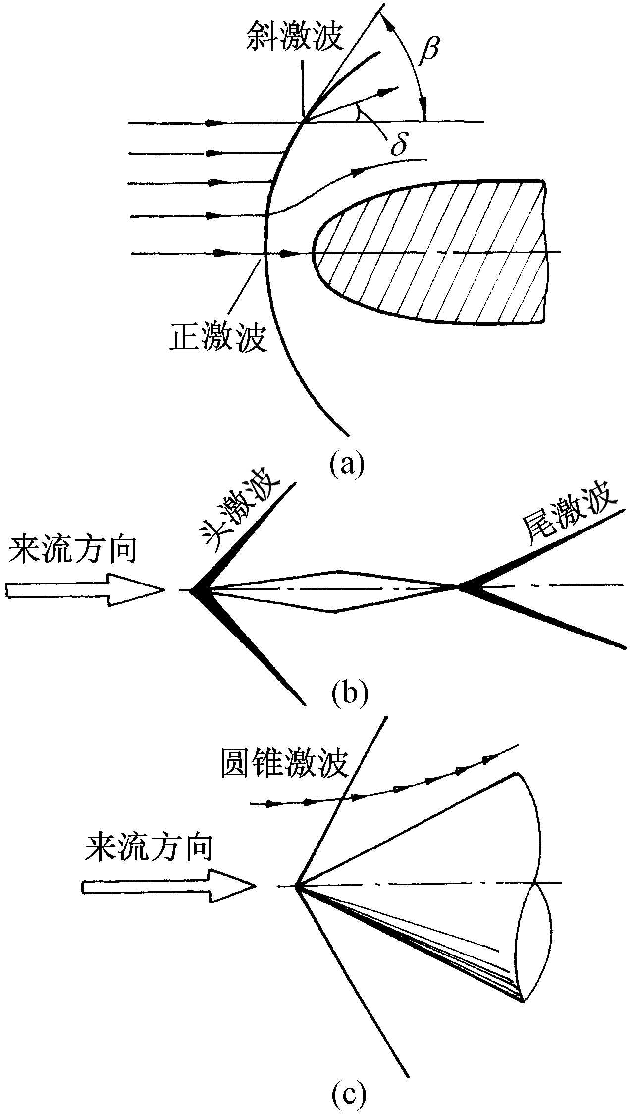 | 释义 | 激波急浪。邊讓《章華臺賦》:“進如浮雲,退如激波。” 波澜、波涛、大浪、恶浪、洪波、洪涛、激波、激浪、惊涛、鲸波、巨浪、巨涛、狂浪、狂涛、浪涛、怒涛;涟漪、鳞波、轻浪、柔波、微波、细浪、漪澜○波澜bō lán(名)波涛:掀起巨大的~|激起~|~起伏|阵阵~|~骤起|~壮阔。 ○波涛bō tāo(名)大波浪:万顷~|~汹涌|~滚滚。 ○大浪dà làng(名)大的波浪:大风~|~淘沙|暴风掀起~。 ○恶浪è làng(名)来势凶猛的浪头:~冲毁江堤|狂风~|~掀天|又是一个~,眼看船要沉没了。 ○洪波hóng bō(名)波涛;大波浪:海上翻滚着~巨浪|~涌起|~百丈|潜龙越~。 ○洪涛hóng tāo(名)大波浪:~奔涌 |长风万里破~。 ○激波jī bō(名)急浪:~涌溢,其声如雷|进如浮云,退如~|轮渡在~中摇荡。 ○激浪jī làng(名)汹涌急剧的波浪:金沙江水~滔滔|~滚滚。 ○惊涛jīng tāo(名)震慑人心的波涛:~骇浪|~腾涌澎湃|~拂石|~怒浪|扁舟一叶傲~|大风起,~将作。 ○鲸波jīng bō(名)大波涛:~鳄浪|大海起~|海上息~。 ○巨浪jù làng(名)很大的波浪:~排空|~卷起千堆雪|~拍岸。 ○巨涛jù tāo(名)大的波涛:~汹涌|~澎湃|~滚滚,冲击堤岸。 ○狂浪kuáng làng(名)狂暴的巨浪:老人奋力跟~搏斗| 巨涛~|小船在~中颠簸。 ○狂涛kuáng tāo(名)汹涌的波涛:~骇浪|~颠浪高漫漫|~巨浪|~巨澜。 ○浪涛làng tāo(名)波涛:远处传来~的轰鸣声|~猛打着船头。 ○怒涛nù tāo(名)汹涌狂暴的波涛:~澎湃|江山秋风卷~。 ●涟漪lián yī(名)〈书〉细小的波纹:微风吹过,湖面上泛起层层~|鱼群嬉戏在~间。 ●鳞波lín bō像鱼鳞一样的波纹:风乍起,吹皱一池春水,泛起片片~|河面流动着~。 ●轻浪qīng làng(名)轻微小浪:晚风~叠,暮雨湿烟凝|~拍打着小船。 ●柔波róu bō(名)柔和的波浪:微风轻抚着~|在康河的~里,我甘心做一条水草。 ●微波wēi bō(名)微小的波浪:风儿荡起阵阵~|莫愁湖里余~|~粼粼|水藻随着~荡漾。 ●细浪xì làng(名)微小的波纹:风吹~雨霏霏|五岭逶迤腾~|鱼鳞~。 ●漪澜yī lán(名)〈书〉水波:这是一沟死水,清风吹不起半点~|微风过处,~阵起|双桨打呀打的,打不破这弱浅的~。 激波即“冲击波”。 激波 激波shock wave又称“冲波”。超音速气体流动中一个十分薄的区域。通过该区时,气流的速度、压强、温度、密度都发生急剧变化。分正激波(离体激波)和斜激波。超音速气流流过正激波后,速度突变为亚音速,但流动方向不变,压强、温度、密度皆急剧增高;流过斜激波后,速度降低但仍为超音速,流动方向与物面平行,压强、温度、密度也急剧增高,但比正激波弱。正激波或斜激波的产生,取决于超音速流动马赫数的大小和物体头部的形状。通常钝头产生离体激波(图a),尖头产生斜激波(菱形物体前缘)(图b)或圆锥激波(圆锥体物体)(图c)。激波的存在使运动物体承受极大的空气阻力。此外,激波与机翼、机身表面气流的相互作用,易引起气流分离,当分离气流流过尾翼时,会降低飞机的操纵性。所以在超音速和高亚音速(在部分区域出现超音速流动)飞机设计中,如何避免激波或减弱激波强度,已成为空气动力研究的重要内容。目前,使用的高亚音速喷气机的机翼都应用了这方面的研究成果,如超临界机翼等。