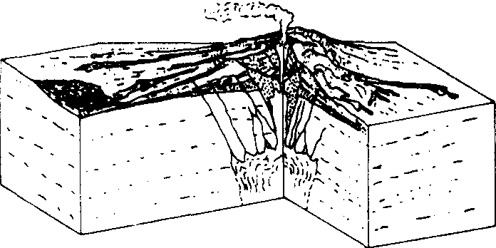 根据火山喷发的特点和形态特征可划分为以下几种类型。 ❶马尔式火山:火山气体以强大的压力从地下进发出来,并产生爆炸将其上覆岩体碎屑冲至高空,但是却没有熔岩和火山碎屑喷出,所以地面不形成火山锥体,只留下一个巨大的漏斗状洼地,有时洼地积水成湖。如欧洲的马尔火山和南非的金伯利火山。 ❷维苏威式火山:由多次火山喷发形成的熔岩流和火山渣、火山灰互层堆积的火山锥体。熔岩多呈中、酸性、粘性大、爆炸力强。经常是在老火山口形成的环形山中间,再发生新的喷发,形成新火山锥,称为寄生火山,这类火山以意大利的维苏威火山最为典型。 ❸夏威夷式火山:这种火山喷发时表现为溶浆平静的溢出火山口,没有爆炸和喷射现象,固体和气体喷发物很少。所以,在岩浆溢出缓慢流动中冷凝堆积的火山锥为平缓的穹窿状,火山顶部平坦开阔,有一宽浅的洼地,即是火山口,火山锥全由熔岩组成,山坡倾角只有3°—10°。这种火山在夏威夷群岛分布最广。熔岩流从火山口或地壳裂隙溢出地表,不但能在火山口周围形成低缓的火山锥,而且在沿地表缓坡继续流动中还能形成熔岩丘、熔岩垄岗和熔岩台地等不同地貌形态。如我国山西大同火山群的熔岩垄岗长几公里,高几十米,宽几十米至百米。在平缓地区大量熔岩流出地表,形成面积广大的熔岩盖层,称熔岩台地。如我国雷州半岛、海南岛北部、江苏盱眙和六合等地广泛分布着熔岩台地。其中范围更大地势更高者又可称为熔岩高原,如南美洲的哥伦比亚熔岩高原,面积达50多万平方公里,厚达1 000米。我国的张北高原和印度的德干高原等都是著名的熔岩高原。熔岩流往往能使河谷堵塞,造成上游积水,成为熔岩堰塞湖,如牡丹江上游的镜泊湖和黑龙江北部的五大连池都是著名的熔岩堰塞湖。火山活动也是一种地质构造运动,它的时间间隔很长,为了表明它的活动性,并以此来衡量它对人类可能够成的威胁程度,人们把有史以来有过活动的火山叫活火山,把晚第四纪以来没有活动的较古老的火山称为死火山,晚第四纪有过活动,但有史以来没有活动的火山叫休眠火山。如海拔3 776米的日本富士山。活火山的生长速率是很惊人的。墨西哥西部的帕里库廷火山自1934年2月5日开始地震20日开始喷发,到26日火山锥就长高了150米,到1951年8月火山已比原来长高了650米左右。1796年白令海峡中的约安博果斯洛夫火山升出水面,到1823年它长高了620米。火山活动也可以使一些海洋中的火山岛陷落海底,印度尼西亚喀拉喀托岛,在一次拉卡特火山喷发后,使这个面积为33平方公里的海岛的23平方公里陷落到300米以下的海水中去。火山活动也是一种经常发生的灾害性地质事件,全世界每年都有若干次火山喷发活动。如1991年6月3日位于菲律宾中吕宋岛上的皮纳图博火山再次大爆发,火山灰喷到3万多米高空,卫星照片显示火山烟云面积达260万平方公里。同时(6月3日、8日)在日本长崎县的云仙岳火山也发生剧烈喷发,温度高达300℃多度的熔岩碎石流,以每小时100多公里的速度冲毁房屋、道路和森林,造成大量人员伤亡和经济损失。