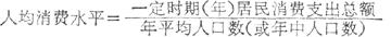 这一指标对研究一国或地区发展农业生产具有重要意义。 人均消费水平 指一定时期(通常一年)居民消费支出总额与年平均人口数之比。 反映居民的一般生活水平。计算公式为: