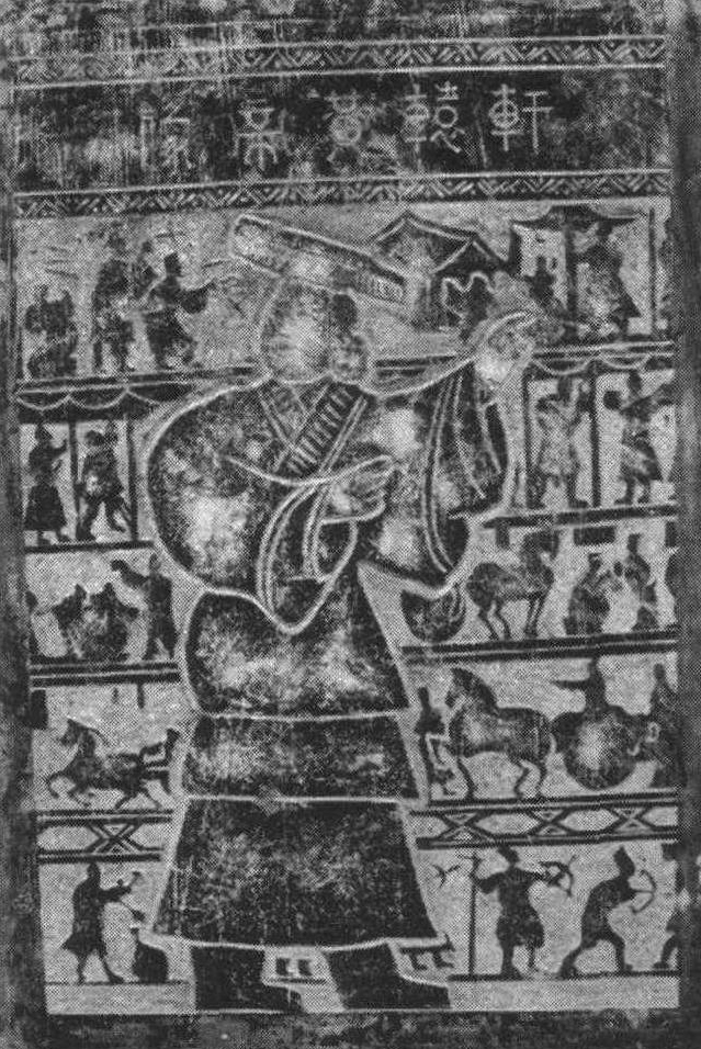 传说中的黄帝轩辕氏 黄帝的 “黄”,与汉族的“汉”,同出一源。它同出一个黝黑的汉子,张着仰天的大嘴,渴望和呼唤甘霖的降落。理解了这些,就不难理会在我们这个多民族的国度里为什么会对祖先的那种炽热的普遍认同。至于“汉”的详细信息,那是以后另卷要说的主要话题。 炎帝时代是母系社会,到了黄帝时代已有向父系社会转化的征兆。我们可以从传说中炎帝之孙柱儿,与黄帝之孙女姬罗的联姻,洞悉出这种转化的微妙。那时候,小伙子普遍是姑娘族落里的站客,柱儿渡过渭水,去姬罗那里相会,是明显的族外对偶婚。时间促使他们离开了双方的两个族落,南下去衡、湘之地开创他们更加美好的生存空间,他们在那里操持祖业,繁衍生息。陕西西部土著人至今仍将女子许嫁称“寻柱儿”。
