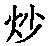 炒 金文;《説文》所無chǎo[火(意符)+少(聲符)→炒(把東西放在鍋裏攪拌著弄熟〈炒菜、炒米〉;喻解雇〈炒魷魚〉;倒買倒賣〈炒黄魚,指倒買倒賣黄金。炒地皮〉。)] [北魏] 賈思勰《齊民要術·作醬法》:“臨食,細切蔥白,著麻油炒蔥,令熟,以和肉醬。” 孫中山《民生主義》:“許多人把土地當作賭具,做投機事業,俗語説是炒地皮。” 炒chǎo(8画)