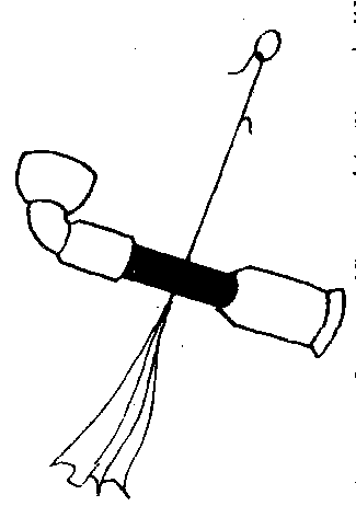 在一木制的烟袋模型下,系一红布,悬挂在铺前、展示出售产品。过去流行东北各地。