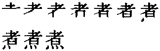 【提示】者,8画; 旧字形9画,日上有一点。日中间的横,宋体与左右两边相接,楷体与左边相接,与右边相离。 *煮〔煑〕zhǔ12画 火部 把食物或其他东西放在有水的容器中加热: ~米饭|~面条|~了几个鸡蛋|把用过的茶杯~一~。 煮煑zhǔ小篆以来的形声字。作从鬲(lì,炊煮器具),从两弓形,即两条冒上来的蒸气。者声。韵变如者诸猪渚堵赌例。象蒸煮形。或体鬲上加水,更形象化。又有或体简化作煮,后隶楷渐变作煑,火字在下变四点。现以从火、者声的作异体字。见《异体字表》。指把东西放在水中加热烹熟。如:煮面|煮饭|病房煮碗筷消毒。 煮煑★异◎异★常◎常