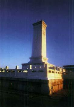 走进天安门广场,肃穆庄严的人民英雄纪念碑便赫然映入眼帘,那高耸挺拔的丰碑默默地歌唱著在人民革命战争中,民族解放战争和民主运动中牺牲的人民英雄。 1949年9月30日,全国人民政治协商会议第一届全体会议通过了在天安门广场建立人民英雄纪念碑的决议,毛泽东亲自为纪念碑奠基。1952年“八一”建军节之际,纪念碑正式动工兴建,1958年的4月竣工,同年5月1日隆重揭幕。 人民英雄纪念碑距天安门墙基463米,碑通高3794米,由413块花岗石砌成,碑身略带弧形,碑基面积3000平方米,用13000块花岗石和汉白玉砌成。碑的正面正对天安门,嵌一块重约70吨,14.7米高的碑心石,上刻毛泽东同志题写的“人民英雄永垂不朽“八个大字。背面碑心石由7块大石组成,上刻周恩来同志手书的碑文。纪念碑正、背面题字都用阴文镌刻在石面上,采用传统镏金工艺做成金字镶嵌进去,碑文金光闪烁,灿烂夺目。 碑座四面嵌著8幅巨大的浮雕,内容分别为焚烧鸦片、金田起义、武昌起义、五四运动、五卅运动、南昌起义、抗日游击战争、胜利渡长江。形象地再现了从鸦片战争开始一百多年来中国民族解放的斗争史。