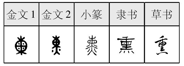 表意,金文1象烟囱冒烟之形,金文2下加火,表示烟火向上窜出。(一说从火,上象囊中盛有香料形,表示焚烧香草使产生香气。)小篆字形稍变,隶定为“熏”。本义读xūn,烟火熏灼,引申为烟气等使物体变色或沾染上气味、温暖、(烟气、气味等)刺激、因长时间接触而受到影响等;又读xùn,引申为(煤气等有毒气体)使人中毒甚至窒息。烟火熏灼义又作“燻”,形声,从火,熏声。《异体字表》以“燻”为异体字。 【辨析】 ❶“熏”与“燻”不是等义异体字。 ❷以“熏”作音符构成的形声字一般读xūn:薰、醺、獯、曛。熏 (xūn)屮黑。熏之象也。 【按】熏本象火從煙囱上出之形,會煙熏之意。屮黑説以小篆字形爲據,不確。 熏 *熏xjwən[甲骨] [金文] [小篆] 《說文》: , 火煙上出也。从屮、从黑。屮、黑,燻象。(一篇下) 燻香之香囊形。 ☚ 壼 對 ☛ 00001281 |