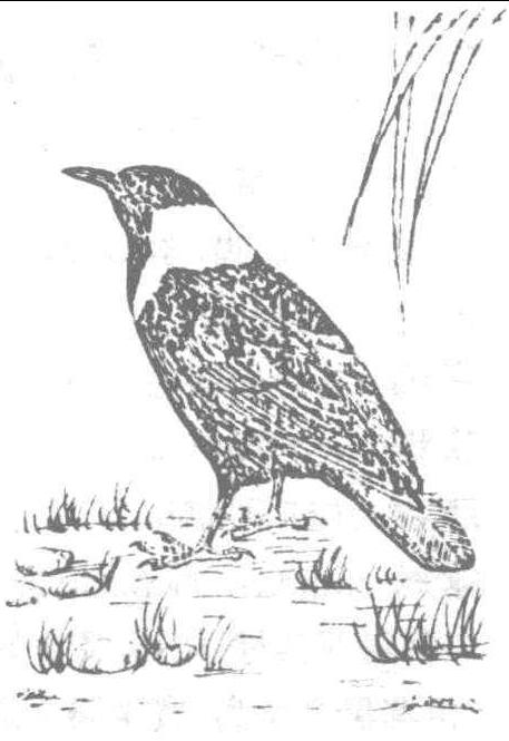 亦稱“白脰烏”、“白頸鴉”、“白頸”、“鬼雀”、“割鶡”、“鶷𪆰”。今稱白頸鴉。體似烏鴉而稍大,後頸、頸側、上背與上胸均白,成一白的項圈;體餘部黑色。遍佈我國東部。性雜食。《爾雅·釋鳥》:“燕,白脰烏。”郝懿行義疏:“《小爾雅》云:白項而羣飛者謂之燕烏。”《漢書·五行志》:“景帝三年,有白頸烏與黑烏群鬬楚國吕縣,白頸不勝,墮泗水中死者數千。”唐·白居易《過駱山人野居小池》詩:“紅芳照水荷,白頸觀魚鳥。”唐·温庭筠《雉場歌》:“彩仗鏘鏘已合圍,繡翎白頸遥相妬。”宋·洪邁《夷堅甲志·包氏僕》:“於放馬渚,常爲白頸鴉登背抛糞,深患之,逐去復來。”明·李時珍《本草綱目·禽三·慈烏》:“似鴉烏而大,白項者,燕烏也……燕烏一名白脰,一名鬼雀,一名鶷𪆰。”《禽經》:“烏之白脰者,西南人謂之鬼雀,鳴則凶咎。”《山堂肆考》卷二一六:“[烏鸦種類亦繁],大喙及白頸,而不能反哺者,南人謂之鬼雀,又謂之割鶡,鳴則有凶咎。又《廣雅》:純黑而反哺者,謂之烏;白頸而羣飛者,謂之燕烏。”《三才圖會·鳥獸》:“慈烏,白項而群飛者,謂之燕烏,白脰烏也。”