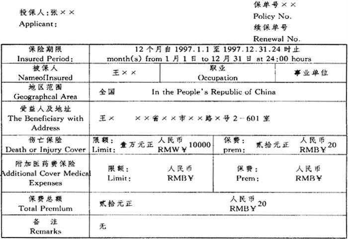 中国人民保险公司人身意外保险单 The People’s Insurance copmany of china PERSONAL ACCIDENT INSURANCE POLICY