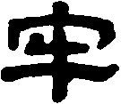 láo表意,甲骨文、金文从牛在栏圈中,小篆字形稍变,隶定为“牢”。本义表示养牲畜的栏圈,引申为关押犯人的监狱、坚固、经久等。牢 (láo)閑,養牛馬圈也。从牛,从冬省,取其四周帀也。 牢 甲 金 篆 隶láo【析形】象形字。古文字形像圈栏围牛而养之形,牛用以烘托。隶书字形牛圈的象形变作“宀”。 【释义】《说文》:“闲养马牛圈也。”(闲:栅栏)本义是关养牲畜的栏圈。[亡羊补牢]谓走失了羊,赶快修补羊圈,还不算晚。比喻失误后及时补救。又引申为作祭品的牲畜。古代祭礼用的牛、羊、豕三牲,三牲各一为一牢。也单指供祭祀用的牛或羊、豕。又牛、羊、豕俱用叫[太牢],只用羊、豕二牲叫[少牢]。由圈养义,引申为监禁犯人的地方,如[牢房]也引申为囚禁、笼络、坚固、稳当等义,如[牢不可破]。 【shape analysis】It is the pictograph character.In ancient character,it is shaped like a scene that the fence enclosed the cattle. 【original meaning】The fence for enclosing and raising animals.Ancient cattle and sheep for sacrifice were kept in fence,so the character was extended to mean the animals for sacrifice.The cattle,sheep and pigs for sacrifice were kept in each barn. 牢 ☚ 俘 𦣻 ☛ 00000575 |