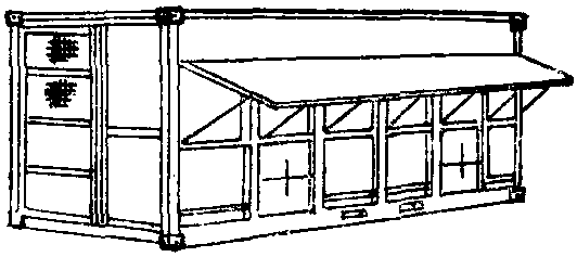 | 释义 | 牲畜集装箱 牲畜集装箱用于装载鸡、鸭、鹅等活家禽和猪、牛、马等活家畜而设计制造的特殊集装箱。这种集装箱的箱顶采用胶合板覆盖,以便遮避太阳光,侧面和端面都有用金属丝网制成的窗,以求有良好的通风。在箱体一侧设有饵槽,便于给牲畜喂食。侧壁下方设有清扫口和排水口,并配有上下移动的拉门,可以把垃圾清扫出去。如图示。