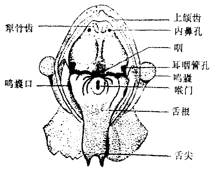 图215 蛙口咽腔 ☚ 舌 耳后腺 ☛ |