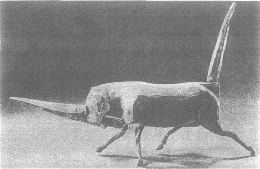 独角兽 这件独角兽是这批木俑中的一件,长57厘米,彩绘,于白底上饰红黑色条纹。独角兽是传说中的灵异之兽,形象怪诞,性情凶猛,有驱魔辟邪之神威。所以,古人常常把它做成雕塑,置于墓室之中,起到逢凶化吉、消灾辟邪的作用。出于这种功能,它的形象往往是狰狞恐怖的,像战国时期长台关大墓的镇墓兽那样给人一种威慑之感,而磨嘴子的独角兽,作者似乎在强调它的非凡气势和向前冲击的动势,给人 一种勇往直前的力量。这件作品造型简洁、大体大面,大的动势处理都十分到家。兽的躯体只略施刀斧、粗粗雕成一长方形,而最富冲击力的头部以及利剑 一般的长角又着意夸张,加之扬起尾部和斜撑的后腿,确实把这只不可一世的凶猛独角兽做活了。 ☚ 马踏飞燕 弋射收获图 ☛ 独角兽du jiao shouunicorn |