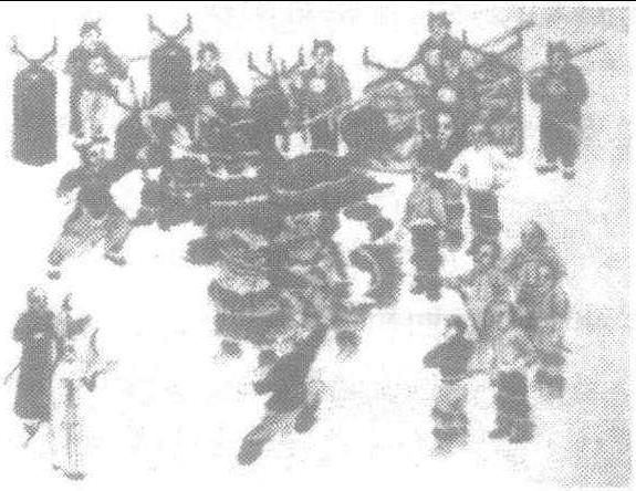 | 释义 | 狮子舞 狮子舞古代民间舞蹈。约起源于南朝宋。据《宋书·宗悫传》载,为宗悫于宋文帝元嘉二十三年在军中所创,后传人民间。一般由两人配合,穿一只狮子“形套”;一人擎狮头,双足作为狮子前肢;一人充狮子身尾,双足作为狮子后肢。表演时翻滚跳跃、搔耳抓痒;另由一人扮的小狮若干,围大狮攀上爬下、翻扑戏弄;并有一人扮作“狮郎”,手执彩球或其他物件逗弄狮子。唐代,《狮子舞》属立部伎的龟兹部。据杜佑《通典》载,舞狮时,有一百四十人组成歌舞队,歌《太平乐》随舞。 ☚ 白纻舞 垂手舞 ☛ 狮子舞民间舞蹈。亦称耍狮子。此舞在我国源远流长,自河北、山东等地传入辽宁省已有二、三百年历史,广泛流传于辽宁省城乡各地,深受群众喜爱。每逢新春佳节都有舞狮以示庆贺的习俗。狮子舞中的大狮(或雄、或雌)由两人合扮,共披一张狮皮。居前者擎狮头,两足为狮子的前肢;在后者充狮尾,上身前俯90°,双手抓住前者腰部,两足为“狮子”的后肢。小狮则由单人扮演,身披一张与四肢连成一体的狮皮,头戴狮头。逗引狮子的领狮人,一身武生装束,手持绣球起舞。主要用大鼓、大钹、小钹等打击乐伴奏,配以唢呐吹奏民间流行的曲牌,随着人、狮情绪、动作的变化,鼓乐节奏或紧或疏、时轻时重。 狮子舞西域杂技之一。又作五方狮子,传自波斯、龟兹。吐鲁番阿斯塔那出土有狮子舞俑。 狮子舞中国民间舞蹈。公元前10余世纪已在民间产生,后被引入宫廷,逢年过节,各地均跳狮子舞欢庆。一般由2人合作,1人扮狮头另1人扮狮尾,称太狮,也有1人披狮皮表演的,称少狮。又分文、武两类,文狮重表演,动作风趣,武狮重武功技巧,动作难度大。流传各地还有高脚狮、火狮、板凳狮等10余种。1953年,狮子舞荣获第4届世界青年学生和平与友谊联欢节金质奖。 狮子舞 狮子舞徽州狮子舞历史悠久,盛行城乡。主要用竹、木、膏、泥、铜片特制狮头,绸缎、苎麻染织狮衣,由二人穿戴装扮表演。表演时有狮童或魁星以彩球诱狮。有狮童的母狮要生小狮。表演有“显脸”、“跳四门”、“狮子啸天”、“金扁担挑水”、“登桌高翻”等程式。狮子舞以抑扬顿挫的锣鼓点子为演出指挥。气氛浓烈,戏谑风趣。除了在舞台上演出外,还可在地摊、街头,屋堂、店堂演出,历来为群众喜闻乐见。 ☚ 麒麟舞 蚌壳舞 ☛ 狮子舞 狮子舞清道光年间传入新城铺、八方等村,表演时两人合作,一人顶狮头,一人披狮身,一人执绣球引逗,腾上跳下。传统动作有“就地十八滚”、“走方桌腿”等。 ☚ 跑驴 架鼓 ☛ 狮子舞 167 狮子舞流行于我国各地的传统民间舞蹈形式之一。狮子象征着吉祥、勇敢和力量。早在汉代《汉书·礼乐志》中就有记载。有舞狮以服瘟降魔的传说。狮子舞的狮型一般由两人组成,前者舞狮头,后者舞狮身。这样二人合成一只大狮子称“太狮”。由一人披戴狮型的小狮子称“少狮”。手拿一个能转动的绣球,在前引逗狮子起舞的少年叫“狮子郎”。动作有转球、抛球、抖球等。狮子舞分文、武两类:文舞有搔痒、舐毛、打滚、抖毛等动作。武舞有跳跃、滚翻、高举、腾转等动作。此外,各地有“手狮舞”、“手摇狮”、“火狮子”、“板凳狮”、“线狮”、“醒狮”等多种狮型、样式和舞法。 ☚ 踏跷 跑旱船 ☛ 狮子舞 狮子舞唐代宫廷舞蹈。唐以前狮子舞已在 民 间 流传。狮子本不产于我国,汉时经月氏和安息国 (古 波斯) 使者作为贡品进献给汉王朝。由于狮子的外貌及勇猛被看作威武和祥瑞的象征,人们逐渐在模拟狮子的形象动作中形成了一种独特的舞蹈形式,这种拟兽的表演者并被冠以一个专门名称“象人”。经过三国、魏晋、南北朝,至唐代,狮子舞有了较大的发展与创新,不仅在服饰化妆上形似,而且采用丰富的舞蹈语汇,刻画狮子的各种情态,力图做到神似。宫廷立部伎中的“太平乐” 亦称“五方狮子舞”,表演规模相当大,舞者披着缀毛的假狮皮,装扮成五个颜色不同的狮子,各立一方,表演狮子“俛仰驯狎”的各种情态。另有二人扮成“昆仑象” (即黑人) 牵着绳,拿着拂逗弄狮子,旁边还有由一百四十人组成的大型伴唱队,高唱太平乐歌,场面雄伟壮观。唐末,经过安史之乱后的宫廷乐舞,人员大大缩减,狮子舞的大型伴唱队已不存在,但舞者人数却有所增加,据《乐府杂录》载,每一狮子有十二个“狮子郎”配合舞蹈,他们头戴红巾,身穿彩衣,手拿红拂子,伴奏乐曲仍为 “太平乐”。唐时宫廷狮子舞虽源于民间,但是某种狮子舞不能随便演,也不能随便观赏。诗人及画家王维,曾任太乐丞,只因伶人为他表演了黄狮子,被除官贬了职。黄是皇帝的象征,黄狮子也只能供皇帝消遣,否则就是越礼、犯罪。唐以后,狮子舞一直在民间流传,至今,成为我国历史悠久、流传很广、样式繁多的优秀民间舞蹈。