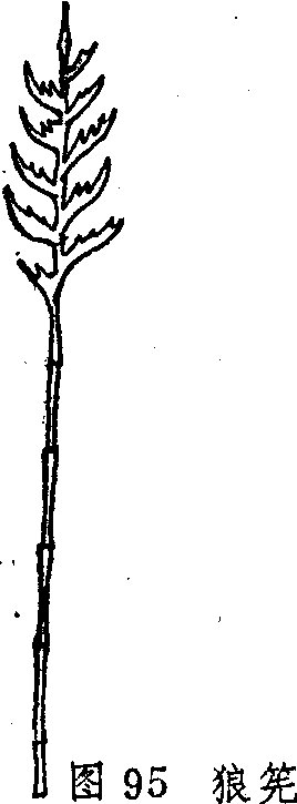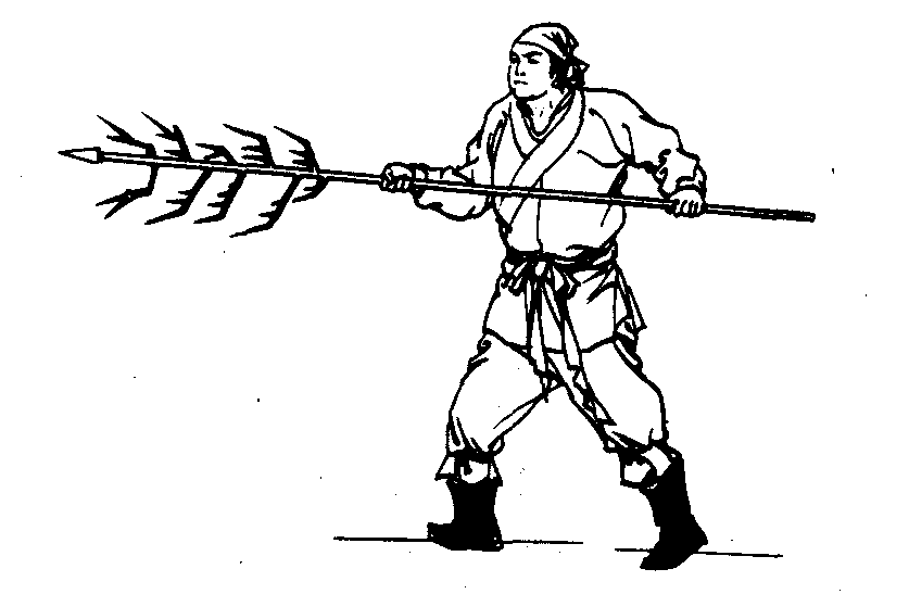 ☚ 扁担 混天戳 ☛ 狼筅 狼筅器械套路,属虎尊拳。全套28式。主要动作有:中门震筅、回马捅筅、连环劈筅等。方法有:绞、捅、扫、劈、震、云、拨、挑、架等。狼筅原取材于民用竹筅,后加上枪头成为兵器;全长7尺至1丈,是虎尊拳派中的器械之一。 ☚ 少林羊角拐 九齿迎风镗 ☛ 狼筅六势/中平势/拗步退势/闸下势/钩开势/架上势/骑龙势 ☚ 翻刺 狼筅六势 ☛ 狼筅 狼筅古代稀有兵器的一种。长一丈五尺,重七斤,用铁、竹二种材料制成。其附枝最长一尺八寸,最短八寸,兵器首部削尖如枪头,所以又叫长枪。这种兵器具有刺、挑、锯、架、叉、拦、、铲、镋、推、拿、拉、扎等作用。用此兵器以骑龙势封闭门户,如千斤闸门下落一样,使敌兵器难以攻入。这种兵器发明于明代(图95)。