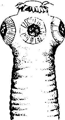☚ 血吸虫 牛肉绦虫 ☛ 猪肉绦虫又称“猪带绦虫”、“有钩绦虫”。学名“链状带绦虫”。绦虫纲,带形科。形态上与牛肉绦虫主要不同点为头节球形上具四个吸盘,头端有顶突及两圈小钩。孕节子宫分支不整齐,每侧约7—13支,体节为700—1000节。生活史与牛肉绦虫相似,但中间宿主是猪。囊尾蚴可寄生在人体的皮下、肌肉、脑、眼,引起囊尾蚴病或称囊虫病。人是猪肉绦虫的唯一终宿主。人因吃生的或未煮熟的“米猪肉”(含囊尾蚴的猪肉)而感染,引起猪肉绦虫病。 猪肉绦虫 猪肉绦虫Taenia solium扁形动物门,绦虫纲,带形科。体长较牛肉绦虫短,一般长2~4米,宽7~8毫米,共有节片700~1000节,节片较薄,略透明。后端的成熟节片较长,约10毫米,卵巢3叶。孕节子宫分枝不整齐,每侧约有7~13枝。头节圆球形,直径约1毫米,具有4个吸盘,并有顶突和2圈小钩(25~50个),故又称“有钩绦虫”。人是唯一的终宿主,寄生于小肠内,引起猪肉绦虫病。常数节同时脱落。中间宿主主要是猪。其幼虫囊尾蚴多寄生在猪的肌肉、肝脏、脑等器官内,为白色小点。有囊尾蚴寄生的猪肉,俗称“豆猪肉”或“米猪肉”。人因吃入未煮熟的、并含有囊尾蚴的猪肉而感染。因囊尾蚴的头节具有小钩,也会寄生在人的皮下组织、肌肉、脑、眼、心、肝、肺、腹膜等处,引起“囊虫病”或“囊尾蚴病”,危害较成虫寄生为大。寄生在眼内时,轻者表现为视力障碍,可见虫体蠕动;重者失明。虫死后,可导致眼球萎缩。特别是寄生在脑内,严重的可使人发作癫痫、头痛、神志不清、视力模糊、偏瘫、失语,甚至突然死亡。
