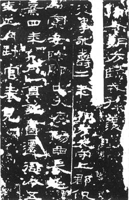 东汉延熹五年(162)正月立。碑在陕西白水县史官村仓颉庙。据淸王昶《金石萃编》记:“碑高六尺一寸,广六尺。”隷书,碑阳二十四行,行字最多者二十七字;阴存二列,上列八行,下列十四行,左侧三列,列六、五、四行不等,右侧四列,列六行,字多漫漶,存二百多字,爲汉隷中之小字。 【赏析】: 东汉时期隷书已经发展成熟,形成了特定的朴实端庄、寓奇于正的风格。字形、结构及用笔趋于规範化,隷书特有的方结构,方用笔已经形成,分行布白纵横成行,具有庄重之美。 《仓颉庙碑》在衆多的汉碑之中以其劲健潇洒而独树一帜。线条强调力度,结体强调舒展,章法上在规矩之中求活泼流畅,纵行直线与弧线形相结合,用笔的变化也很丰富。横行并不是匀称地拉平,而是每个字排布高低不平,这样就打破了纵行横列齐整分布的呆板格局,形成了这种有疏有密的良好的视觉效果。用笔的转折方面:方析与圆转结合。方折的地方强调力度,圆转之处强调飘逸,如第二行“永”字的两处方折与两处圆转;第二行末一字的“ 由于年代久远的原因,使碑面残损,形成了碑版的残破美。残破美增加了作品的古朴之感;残损之后的黑白对比更加强烈;结字也形成了併笔的感觉,古穆天眞之趣顿生。 汉代隷书主要以气息高古爲特色,在古朴庄重之中包含丰富的趣味。《仓颉庙碑》是以古穆劲健取胜的典範。 |