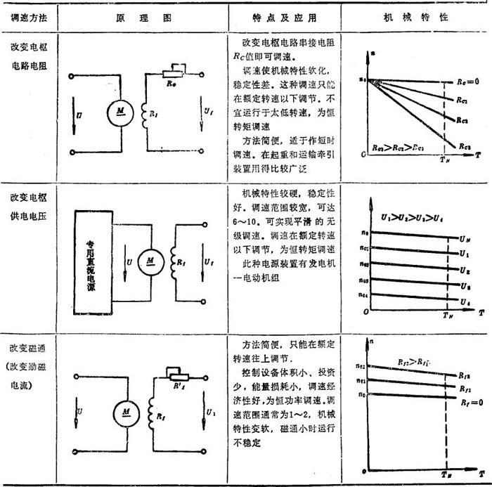 2.3.3 他(并)励电动机的调速 直流电动机的调速方法及其特点和应用见表8.2-21。 表8.2-21 直流电动机三种调速方法及其特点和应用