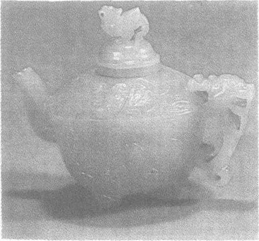 | 释义 | 玉砚滴 玉砚滴明。通盖高12.7厘米,口径4.4厘米。1962年北京师范大学出土。北京首都博物馆藏。砚滴是滴水于砚的器具,其形制方圆不一,还有些做成动物状。质地有铜、瓷、玉、石质多种。此砚滴由青白色玉所制,形状如茶壶样。盖纽雕成一站立状的鸳鸯。器肩部较宽且向下斜,上有隐起的兽首和云鹤纹。腹部饰水波和鱼纹。鋬凸雕为龙形,流粗壮。下承以三个如意云形足。此器造型敦厚,雕琢精细,既是一种实用器,又可作为工艺品摆设,从其风格观察,可能是嘉靖、万历时期的作品。