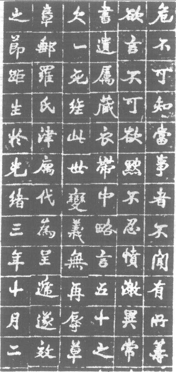 | 释义 | 王國維墓志民國十六年 (1927) 刻。楊鍾羲撰,袁勵準書。正楷。是年,碩儒王國維五十一歲投水頤和園昆明湖,其故人、同寮袁勵準竭盡心力書寫此志。書勢優雅,特性鮮明,溶會北碑,渾然一體。此插圖并非出土物,而係入壙前之初拓本。