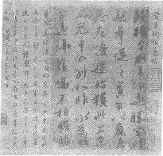 东晋。纸本。纵25.1厘米,横17.2厘米。曾经清乾隆、嘉庆内府、清安岐收藏,北京故宫博物院藏。王珣(东晋永和六年一隆安五年,即公元350—401年),字元琳,小名法护,山东琅琊人。曾官尚书令,散骑常侍。工文章。善行草书。董其昌评其书“潇洒古淡”。此件作品行书:“珣顿首,伯远胜业情期,群从之宝,自以羸患,志在优游;始获此出。意不克申,分别如昨,永为畴古。远隔岭峤,不相瞻临。”书法瘦劲古秀,笔法结体与王羲之《姨母》帖极为接近,放笔直书,锋棱转侧之间,笔丝墨迹,真切可见,为晋人墨迹中最可信之真迹,也是最具晋人书风的法书珍品。是著名的“三希”之一。《宣和书谱》、《吴氏书画记》、《平生壮观》、《墨缘汇观》、《石渠宝笈初编》有著录。刻入《三希堂法帖》。