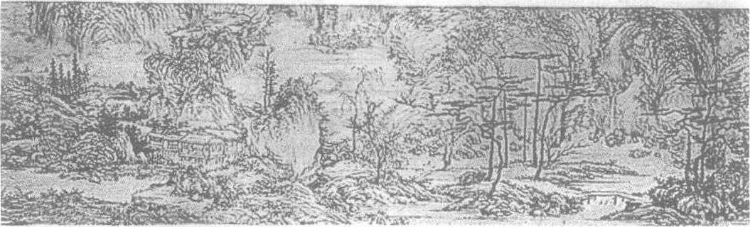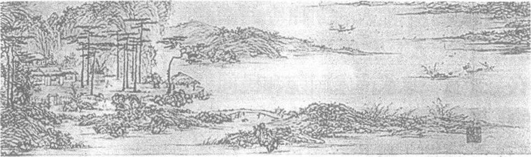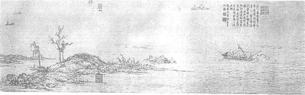 纸本,墨笔画。纵117.5厘米、横820.5厘米。现藏辽宁省博物馆。画家乡太湖一带景色。气势磅礴,山水无尽。湖中渔民紧张劳作,山间有樵夫担柴而过,水中又有驾小舟独自垂钓者。航帆远影,鸿雁远征,均清晰可见。境界十分开阔。画面形象皆以实笔画出,极少湿笔皴擦,颇见笔墨功夫。山峦以干淡笔(所谓干淡笔是指笔上的墨水不饱和,而且墨色较浅)勾皴,披麻间解索,线条根根外露,效果近似于倪瓒的 《春山图》,又于山石顶部坡沿点满苔点。密密麻麻,与明晰的线条交相辉映。手法似学王蒙的《太白山图》。画中的树木大都不双勾树干,而以浓焦墨画之,屈直俯仰之态了了分明。此种画树法实为王绂所独创。画面有乾隆题诗一首,可助画意。诗曰: