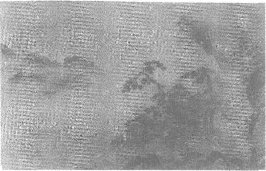 明。王谔绘。绢本淡设色。纵143.2厘米,横229厘米。北京故宫博物院藏。王谔(生卒年代不详),字廷直,奉化(今属浙江)人。孝宗弘治元年(公元1488年)以绘画供事仁智殿。少年时曾拜同里人萧风为师,后学唐宋名家,临摹奇山、怪石。古木险湍等精妙处。画树石多烟霭之态,势如泼墨。他擅长马远、夏圭一派的山水。武宗正德元年(公元1506年)任锦衣千户,后以病乞归。年至80余笔力更劲拔。此图描绘的是一高士隔江远眺的情景。图中江波浩渺、水天相接。大江的此岸,悬岩嶙峋,数棵长松枝叶繁茂挺立于乱石间。岸边设水榭亭阁,有一高士立于榭台上,气宇轩昂地远眺大江彼岸,其后童仆侍随;彼岸远山逶迤,沿山坡座座房舍、草树隐隐可见,江边停泊着点点船只,桅樯栉比。此图用笔苍劲,水墨淋漓,水榭楼阁用笔工细严谨,图景气势博大,意境深邃,令人回味。署款:“王谔”。