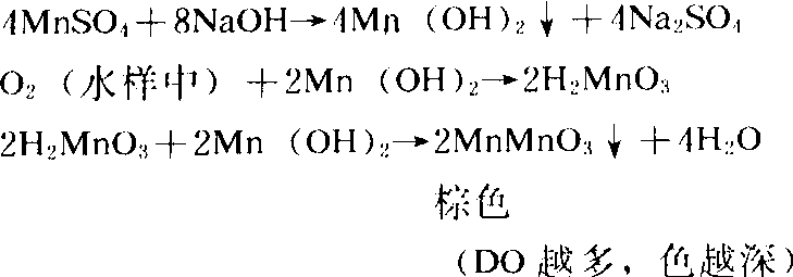 4KI+H2SO4→4HI+2K2SO4 2MnMnO3+4H2SO4+4HI→4MnSO4+2I2+6H2O 所析出的碘以淀粉为指示剂,用Na2S2O3标准溶液滴定至终点。 2Na2S2O3+2I2→2NS2S4O6+4NaI 结果计算: 设V为Na2S2O3溶液的用量(ml) a为测定时所取水样的体积(ml) N为Na2S2O3溶液的当量浓度 8为以毫克表示的氧的当量