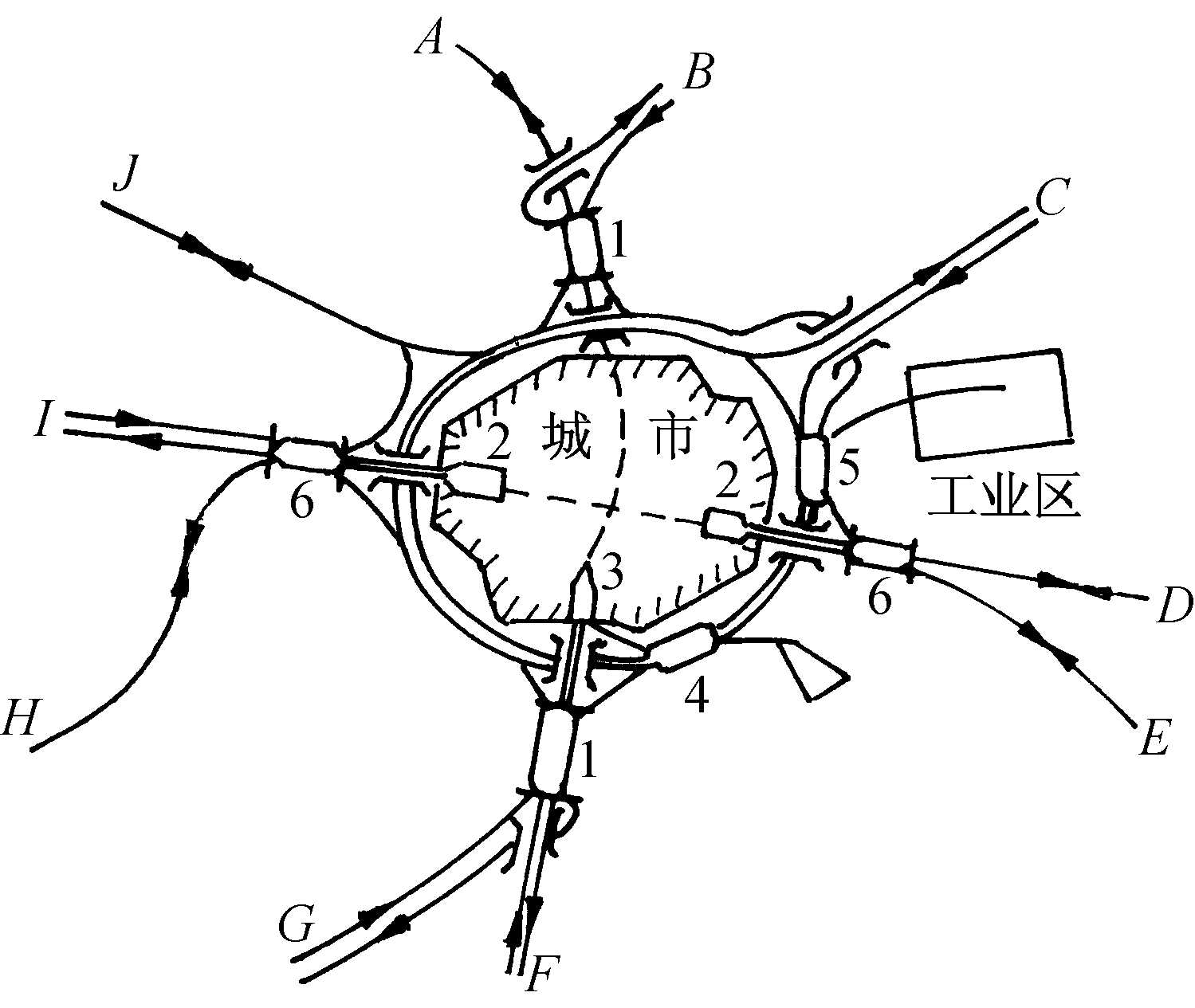 | 释义 | 环形枢纽 环形枢纽circular junction terminal多条铁路干线从不同方向分散引入,并在城市外围以联络线将各干线相连,构成环状结构的铁路枢纽。大多是在其他枢纽图形的基础上,根据运量大小、车流方向、作业要求以及城市发展等多项因素通过分阶段修建迂回线、联络线而逐步构成包围城市的环线所发展形成的。枢纽内的主要专业站按作业要求可以布置在引入线上,也可以布置在环线上,选择余地较大;整个枢纽列车作业径路灵活,有较大的运输能力,但安排不当会产生运营上的浪费和径路负担的不均衡。为避免列车在环线上绕行距离过长,有些环形枢纽修有穿越城市中心的地面的或地下的直径线。环形枢纽基建工程费很大,对环内城市的发展造成一定的限制,规划时对环线的范围应慎重考虑。