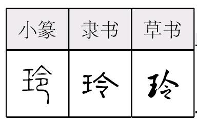 línɡ形声,从王(玉),令声,本义为拟声词,玉器碰击的声音,多用于女性人名。 |
