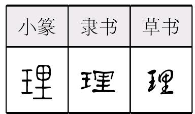 lǐ形声,从王(玉),里声,本义为治玉,对玉石进行初步加工,顺着玉的纹理把它从矿石中剖分出来,引申为治理、办理、管理、修理、玉石等物体的纹路、物质组织的条纹、事物的规律、道理等。理 篆 隶lǐ 【析形】 形声字。古文字形从玉,里声。【释义】 《说文》:“治玉也。”本义是加工雕琢玉石。引申为治理、管理。理是按照玉的纹路去雕琢,故引申指物质本身的纹路、层次,客观事物本身的次序,如[心理]。又表示事物的规律,是非得失的标准、根据,如[理由]。又表示按事物本身的规律或依据一定的标准对事物进行加工、处置,如[理财]。[不可理喻]无法跟他讲道理。形容态度蛮横。[理直气壮]谓理由充分,说话有气势。【shape analysis】 It is the pictophonetic character.In ancient character the part 玉(yù,jade)is as an ideogram and the part里(lǐ) as a phonetic sign.【original meaning】 Carved jade.