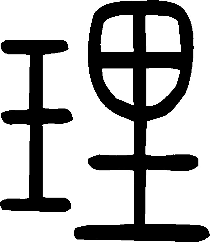 理 金文; 篆lǐ [王(玉,意符)+里(聲符)→ 理(《説文》:“理,治玉也。從玉,里聲。”理,古指琢磨玉石,未經琢磨叫璞,已經琢磨稱玉。這一過程叫“治理”,治理時通常按玉的“紋路”因材施治,所以有文理、條理的説法。引申爲整治〈理髮、理財、修理〉。由紋理引申爲道理,推究事物内部的規律〈物理〉,依照規律〈順理成章〉,理順鞏固已有知識〈理書、理曲〉,由治玉的態度,泛指對人事的態度〈理睬,或置之不理〉。人在追究真實道理的過程中,只能接近真理,不能窮盡真理。因爲事物也在發展,永無止境。物常變,理難窮。)] [戰國] 孔伋《中庸·第三十一章》:“文理密察,足以有别也。”(文彩條理能够仔細觀察,足以區别事理的性質類别。) [清] 曹雪芹《红楼夢》(第十四回):“那鳳姐不畏勤勞,天天於卯正二刻就過來點卯理事。”(點卯,舊時官廳于卯時(5:00~7:00)查點到班人員。王熙鳳在幫賈珍理家時也用了這個規矩。)