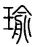 | 释义 | 瑜Yú现行罕见姓氏。今云南之江川有分布。此姓系江川县公安局提供。未详其源。(按: 瑜,美玉,疑即指物以为姓。) 瑜读音·ü(ˊ),为ü韵目,属u—ü韵部。羊朱切,平,虞韵。 上一条: 渝 下一条: 隃 瑜yu美玉。成语:“瑕不掩瑜”。《礼记·玉藻》:“世子佩~。”(世子:帝王或诸侯的嫡长子。)韩愈《殿中少监马君墓志铭》:“幼子娟好静秀,瑶环~珥。”(娟:美。瑶:美玉。珥:耳饰。) 瑜yú❶玉的光彩;比喻优点(跟“瑕”相对) 瑜❶美玉。 瑜yú❶ 美玉。 瑜(1次) 美玉名。怀瑾握~兮《章·怀》 瑜yú美玉。《左传·宣公十五年》:“山薮藏疾,瑾瑜匿瑕。”孔颖达疏:“瑾瑜,玉之美名。”《怀沙》:“怀瑾握瑜兮。” 瑜yú玉的光彩。比喻优点。《礼记·聘义》:“瑕不掩瑜,玉不掩瑕。”《四库提要·史部·传记类》一:“晦巷(朱熹)集中亦有与(吕)祖谦书曰:‘《名臣言行录》一书,亦当时草草为之,……初不成文字,因看得为订正示及为幸’云云,则是书瑕瑜互见,朱子原不自讳。” 瑜美玉。《禮記·聘義》: “瑕不掩瑜,瑜不掩瑕,忠也。” 鄭玄注: “瑕,玉之病者,瑜,其中間美者。” 陸德明 《經典釋文》: “瑜,羊朱反,玉中美。” 古代名物 > 珍寳類 > 珠玉部 > 玉 > 瑜 瑜 yú 赤色美玉。《禮記·玉藻》:“世子佩瑜玉而綦組綬。”《山海經·西山經》:“齋百日以百犧,瘗用百瑜。”郭璞注:“瑜,赤美玉名。”又“瑾瑜之玉爲良,堅栗精密,濁澤而有光,五色發作,以和柔剛。” 瑕;瑜○瑕xiá(名)玉上面的斑点,比喻缺点:~疵|白璧微~| 白璧无~。 ●瑜yú(名)美玉,玉的光彩,比喻优点:瑕不掩~|瑕~互见。 瑜yú〖名词〗 瑜yú❶ 美玉。《屈原列传》:“何故怀瑾握~,而自令见放为?” 瑜*yuE8A4 美玉 美玉玙 珺 珵 琪 琦(琦玮) 琨(琨瑜) 琰(琰琬) 珲 璇(璇玉) 璆 琳(琳珪;琳球;琳玙;璆琳) 瑜(瑜玉) 玮 瑶(瑶华;瑶玉;瑶琁;瑶琚;瑶琰;瑶琨;瑶瑾;瑶璠;瑶琼;琼瑶;碧瑶)球(球玉;球琳) 琬(琬琰) 瑾(瑾瑜;瑾瑶) 璧(璧英;和氏璧) 琼(琼玉;琼玖;琼琇;琼瑛;琼珶;琼珉) 璠(璠瑜;璠玙) 瑷 璇 璐(宝璐) 玉英 陆离 昭华 昆玉 昆玉 丽玉 谷玉 玉莹 妙璞 卞璞 和氏 和璞 和玉 珠玉 珍石 真玉 瑞玉 良玉 宝璧 美宝 琪瑰 珪玉 珪珙 瑛琭 瑛瑜 宝瑛 ☚ 各种用途的玉 财物 ☛ 优点 优点瑜 长 高处 ☚ 得到好处 没有好处 ☛ 各种光彩 各种光彩景物的光彩:物彩 ☚ 光彩 光彩的样子 ☛ 长处 长处长(所~;一技之~) 瑜(瑕不掩~) 千秋 优点 高处 另见:优点 能力 技能 优秀 缺点 ☚ 长处 各有长处 ☛ 瑜yú羊朱切,平虞。 〖瑜〗 粵 jyu4〔餘〕普 yú ❶ 美玉。許慎《說文解字》:「瑾、〜,美玉也。」司馬遷《史記.屈原賈生列傳》:「何故懷瑾握〜而自令見放為?」(見放:被放逐。)❷ 玉的光彩,比喻優點,與「瑕」相對。《禮記.聘義》:「瑕不掩〜,〜不掩瑕,忠也。」 瑜yú[书] ❶ (美玉) fine jade; gem 瑜yú❶ 瑜 |