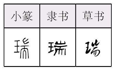ruì形声,从王(玉),耑(zhuān)声,本义为古代的一种玉制信物,用作凭证,引申为吉祥的征兆、吉祥等。瑞 (ruì)以玉爲信也。从王,耑聲。 【按】王,即“玉”字。 瑞 篆 隶ruì【析形】形声字。古文字形从玉,耑声。 【释义】《说文》:“以玉为信也。”本义是古代用作符信的玉。《书·舜典》:“覲四岳群牧,班瑞于群后。”(班瑞:颁还瑞玉)引申指祥瑞,古人认为自然界出现某些现象是吉祥之兆。又指吉祥的事物。如[瑞气]泛指吉祥之气。[瑞雪]应时好雪,以能杀虫保温,多视为丰年的预兆。 【shape analysis】It is the pictophonetic character. In ancient character the meaning is related to玉(yù,jade). It sounds like耑(duān) . 【original meaning】 The jade as a symbol of ancient letter. 瑞 *瑞djiwa[甲骨] [金文] [小篆] 《說文》: , 以玉為信也。从玉,耑聲。(一篇上)