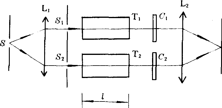 | 释义 | 瑞利干涉仪 瑞利干涉仪reili gansheyi一种分波面双光束干涉仪。1896年,瑞利研究制成,是杨氏双缝干涉实验装置的改型,用于测定流体的折射率。单色缝光源S位于透镜L1的前焦面,出射的平行光射到与S平行的狭缝S1和S2上,从双缝出来的光分别通过长度为l的玻璃管T1和T2,接着分别通过补偿板C1和C2,在透镜L2的后焦面上相遇,产生干涉条纹。若在T1和T2中分别装入折射率为n和n′的流体,则两束光的光程差变化为(n-n′)l。移过L2后焦面上某一位置的干涉条纹数为△m=(n-n′)l/λ,式中λ为光的波长。测出△m,由n′的值就可求出n。实际测量中,并不去数出条纹的移动数,而是让半截狭缝(沿垂直于纸面的方向)的光通过玻璃管,另外半截狭缝的光直接在L2的后焦面形成一组比较条纹。调节光程补偿板C1和C2,就可读出光程差的变化。瑞利干涉仪能检测数量级为10-8的折射率变化,是检验气体和液体中杂质含量的灵敏仪器。例如,在长为100厘米的空气管中,可以测知含有十万分之六的氦。
