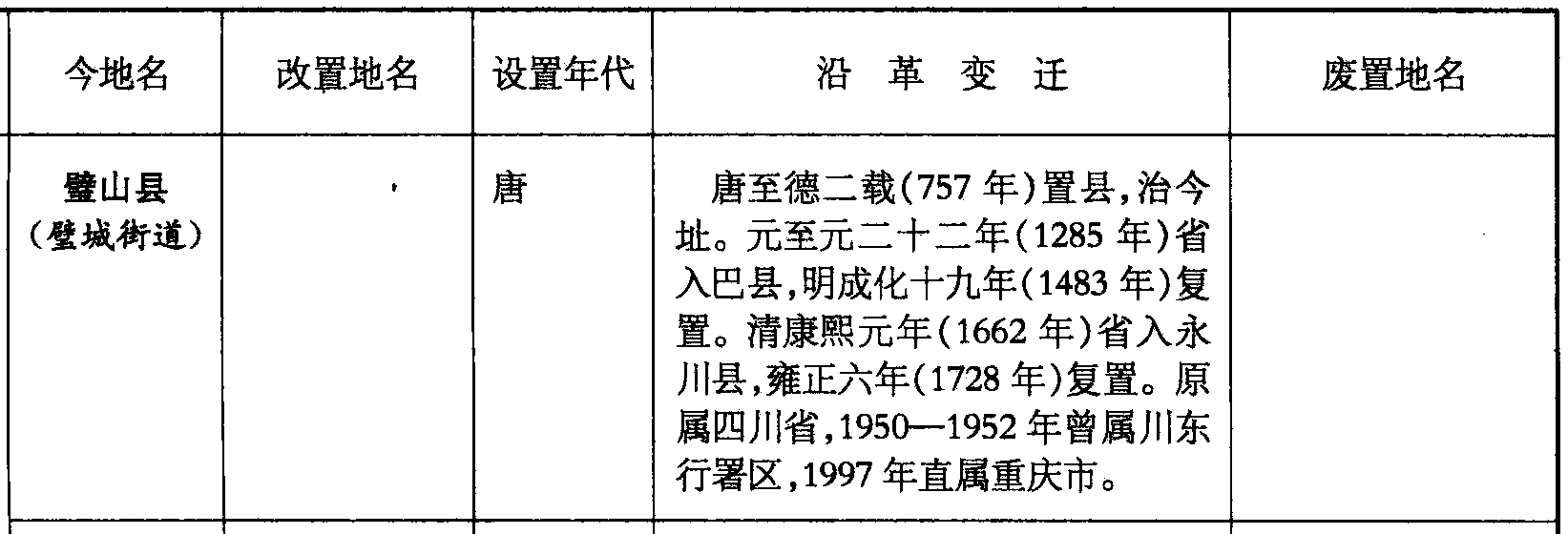 璧山县(璧城街道)唐唐至德二载(757年)置县,治今址。元至元二十二年(1285年)省入巴县,明成化十九年(1483年)复置。清康熙元年(1662年)省入永川县,雍正六年(1728年)复置。原属四川省,1950—1952年曾属川东行署区,1997年直属重庆市。