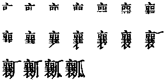 瓤读音r·ang(ˊ),为ang韵目,属ang—iang—uang韵部。汝阳切,平,阳韵。 ❶瓜类的肉。 ❷其它果实的肉或分列的子房。 上一条: 嚷 下一条: 儴 瓤嚷rǎng差,没能耐。例:他比人家~得多了,差~大。 ❍ 这女人脑子混~,不灵醒,做事差~大。也通“ ”。 《汉语大字典》:“瓤,差,没能耐。”《红楼梦》五五回:“几件事过手,渐觉探春精细处不 凤姐。” 瓤柔rang2(形)❶(布、纸等)很薄而软;不结实:这纸太~了,经不起铅笔画。 ❷软弱无力,没有精神:拉了一天车,周身都是~的。|我每天赶了安乐寺回来,说真话,硬是人要~半天,才缓得过气来。(李选三323) 瓤〔rang〕ghob rangl: 苦瓜~。ghob rangl kut guad. 瓤{}五7513①形软;弱。⑴中原官话。山东济宁〖 〗。挺~。陕西商县张家塬〖 〗。你尝这凉粉~的很‖这皮子熟的好,你试多~‖~活柔软。⑵兰银官话。新疆乌鲁木齐〖 〗。那个人不~。⑶江淮官话。江苏扬州〖 〗。安徽合肥〖 〗。⑷西南官话。湖北武汉〖 〗。②形身体虚弱;软弱无力。⑴中原官话。青海西宁〖 〗。河南洛阳〖 〗。你身体阵~。陕西商县张家塬〖 〗。你真不~啊,能扛二百斤‖他又瘦又小,~的很。⑵兰银官话。甘肃兰州〖 〗。十八岁了,还将是十四、五岁的娃们一样~,身体单的很哪!⑶江淮官话。江苏淮阴〖 〗。你病才好,身体还~咧‖一个上午,骑车跑一个来回,~死了。安徽合肥〖 〗。⑷西南官话。四川成都〖 〗。她身体很~,经常生病‖拉了一天车,周身都是~的。四川南川。1931年《南川县志》:「土语谓人精力不健曰~。」贵州贵阳〖 〗。身子~得很。贵州桐梓〖 〗、沿河〖 〗。我饿~了。云南昭通。姜亮夫《昭通方言疏证・释词》:「~,音如『让』阳平。昭人谓软弱曰~。」③形(布、纸等)单薄而不结实。西南官话。四川成都〖 〗。衣服太~,一扯就烂‖这纸太~了,经不起铅笔画。四川南川。1931年《南川县志》:「土语谓布匹稀薄亦曰~。」贵州桐梓〖 〗、沿河〖 〗。这布~很了不经穿。④形差;不好。江淮官话。江苏淮阴〖 〗。你修电视机,这技术真不~。⑤名瓜瓤。引申指食品中包的馅儿。⑴西南官话。四川。明李实《蜀语》:「瓜中犀曰~,馒头中肉菜亦曰~。~,音禳。」⑵吴语。上海〖 〗。肉~‖菜~。葛毅卿《吴方言解》:「吴人谓瓜实曰~。」⑥名子囊。闽语。福建厦门〖 〗。⑦名核儿。吴语。浙江黄岩。⑧动填馅做菜肴。北京官话。北京〖 〗。~冬瓜做冬瓜盅‖~茄子茄子里填肉馅烧熟‖~牛尾把鱼馅填入牛尾做菜肴。⑨动溢出。冀鲁官话。山东。《儿女英雄传》第十五回:「老爷子,你老人家无论叫我干什么我都去,独你老人家的酒我可不敢动他:回来又是怎么晃~了,温毛了。」   瓤ráng瓤子 △ 香瓜~∣信~儿。 瓤❶瓜果内部的肉、瓣:~子︱橘~︱西瓜~儿。 ❷物品里面包着的东西:信~儿︱秫秸~。 瓤ráng❶ 瓜果皮里包着的种子肉或瓣儿:西瓜瓤儿∣皮薄瓤厚。 ❷ 泛指被壳、外皮包在里面的部分:信瓤儿│枕头瓤儿。 瓤ràng填馅儿做菜肴。如:~冬瓜(做冬瓜盅)。/~茄子(茄子里填肉馅烧熟)。/~牛尾(把鱼馅填入牛尾做菜肴)。 瓤rang瓤儿 瓤子 红瓤儿 沙瓤 信瓤儿1 古代名物 > 穀蔬類 > 蔬部 > 瓜瓠 > 瓤 瓤 ráng 亦稱“瓜練”。瓜内與子相連的部分,如絮而多汁。晉·傳玄《瓜賦》:“細肌密裏,多瓤少瓣。”《正字通》:“瓤爲瓜中實,與犀相包連,白虚如絮,有汁,《本草》謂之瓜練,非瓜中犀也。” 瓤ráng瓜瓤。傅玄《瓜赋》:“细肌密理,多~少瓣。”(瓣:瓜的籽。)泛指果皮里包着种子的肉或瓣。白居易《荔枝图序》:“~肉莹白如冰雪。” 瓤*rangC8BF ❶瓜类的肉:白子沙~的西瓜/橘子~。 ❷指某些皮或壳里包着的东西:信~/甘蔗~。 ❸〈方〉软弱,没能耐:病后身体~/修电脑的技术真不~。 果的各部分 果的各部分果子的皮面部分:皮(~子;果~;梨~;桃~) 橘的外皮:黄苞 谷壳:稃 果实的皮膜:衣(芋~;花生~) 种子的外衣:孚甲 坚硬的皮:壳 浆果的坚硬皮壳:核(果~) 核果中心的坚硬部分:核(桃~;枣~) 禾本科植物子实外壳长的针状物:秒 芒(麦~;禾~) 果子可吃的部分:肉(枣~;笋~) 栗肉:黄玉 果壳里的柔软部分:仁(果~) 瓜果里的肉或自然隔开部分:瓤(瓤子;瓜~) 穰 瓣(豆~;橘~) ☚ 子实 果实名 ☛