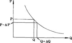 指衡量价格变化对市场需求变动影响幅度的一个量度,即当价格下降或上升一定比率所引起的需求上升或减少的比率之比。 按价格的变动幅度可将价格需求弹性分为点弹性和弧弹性两种: (1)点弹性。 此种情况下,价格和市场需求量的变化都很小,可视其变化在图形上为一点,故称之为点弹性。如图:  点弹性可用下式表示:  式中:Ep表示点弹性;P表示价格;Q表示需求量;ΔQ表示需求增加或减少量;ΔP表示价格上升或下降量。 因为价格与需求量是按相反的方向变化的,即价格上升时,需求量下降,价格下降时,需求量上升,它们的比值总为负数,所以我们规定点弹性时取绝对值。 (2)弧弹性。 此时价格和市场需求量的变动都较大,在图形上表现为两者沿著需求曲线的一个弧作间断运动,如图:  弧弹性可用下式表示  价格需求弹性,无论是点弹性或弧弹性,都可用下列标准进行判断: 若Ep=1,则需求量与价格以同一比率增加或减少,此时价格较适中;若Ep>1,说明需求量变动幅度大于价格变动幅度,此时价格需求弹性大或有弹性,企业可视情况降价出售产品; 若Ep<1,说明无弹性或缺少弹性。 |