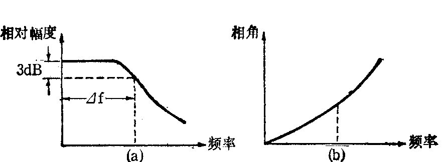 图2 仪器滞环误差示意图 之比,即S=△A0/△Ai。对于线性仪器,灵敏度S为常数,并可用满量程的输出量与相应的输入量之比计算。灵敏度是将仪器的输出量校准为输入量的依据,也是仪器测量微小信号能力的反应。生物医学测量的信号多较微弱,一般要求仪器的灵敏度较高。在实际测量中,应根据被测信号的幅度范围选择合适的灵敏度,以满足处理、显示和记录系统对输入量幅度的要求。仪器灵敏度的选择,还应与仪器的抗干扰能力综合考虑。仪器灵敏度愈高,愈有利于小信号的测量;但对干扰信号也愈敏感,仪器稳定性也愈差。漂移 是指仪器的输出量随时间或外部环境变化而变化的程度,主要包括零点漂移、温度漂移和灵敏度温漂等指标。 (1)零点漂移:用无输入信号时和恒定环境条件下,仪器输出量在一定时间内的最大变化与满量程之比表示, 其中△Azmax为指定时间内,在输入量为零情况下的输出量最大变化值。零点漂移反映仪器在无信号输入和环境温度等条件恒定时产生的随时间变化的测量误差,该误差会迭加在总的测量误差内。在仪器具有放大能力的情况下,零点漂移往往通过除以灵敏度而折算到输入端,以便在计算和评价仪器零点漂移指标时,排除系统灵敏度的因素。单方向变化的零点漂移有一定规律,往往可在测量中校正;无定向的零点漂移难于校正,在测量弱信号时,应尽量避免。(2) 温度漂移: 用无输入信号条件下仪器输出量随环境温度的变化与满量程之比表示,即: %,其中△AT为环境温度变化△T时引起的仪器输出量的变化。温度漂移反映环境温度变化对仪器零点的影响。(3)灵敏度温漂: 用一定环境温度变化范围内仪器灵敏度的最大相对变化量表示,即: 式中△Smax为一定温度变化范围内仪器灵敏度的最大变化。灵敏度温漂反映环境温度变化对测量的影响,在一些传感器中是很重要的指标,并往往采用适当的温度补偿电路来减小温度漂移。实际测量中,应保持环境温度在灵敏度温漂的允许范围内。频率特性 是指仪器输出量的幅度和相位与输入正弦信号频率的关系。反映在输入信号幅度恒定条件下输出幅度与输入正弦信号频率关系的曲线,称为幅频特性曲线; 反映输出量和输入正弦信号间的相角与输入信号频率关系的曲线,称为相频特性曲线,如图3所示。使仪器输出幅度随频率的变化不超过规定值(如3dB)的输入信号频率范围,称为响应频率,又称通频带,对应于幅频特性曲线的平坦段,如写作△f=0~1000Hz。 任何一复杂的生理信号波形,都可用数学方法或用频谱仪分解成一系列不同频率的正弦波成分(参见“