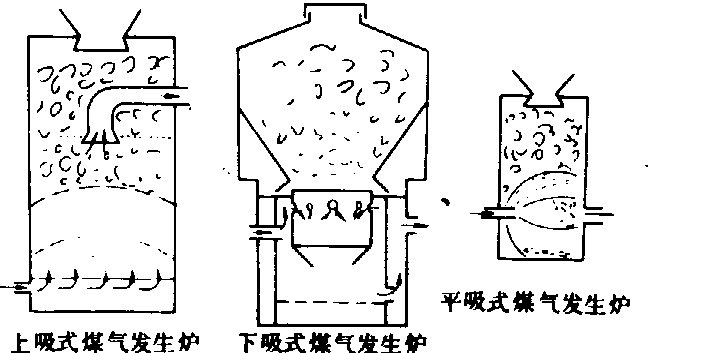 燃烧器的结构形式 生物质热解气化过程 是在同一个燃烧器里完成的,分氧化、还原、干馏、干燥四个阶段。根据流入空气和流出可燃气(通常称为煤气)的方向,有上吸式、下吸式和平吸式煤气发生炉三种结构形式(见图)。 上吸式煤气发生炉燃料由顶部装入炉内,使之停留在炉篦上,由炉篦下引入空气,点火燃烧。由于空气充足,燃料氧化生成二氧化碳(CO2),并释放出热量Q1,此阶段谓之氧化阶段,其反应式为: C+O2→CO2+405.899千焦/摩 此热流气体向上运动,二氧化碳和上层燃料碳接触,在缺空气条件下,吸入热量Q2还原成一氧化碳(CO),谓之还原阶段,其反应式为: C+CO2→2CO-164.453千焦/摩 当放热率大于吸热率,气化过程便能正常稳定进行。在氧化阶段中,燃烧温度可达1200~1500℃。还原阶段温度降至700~900℃。热气体继续上流,燃烧中的挥发质和焦油被分离,形成焦炭,这就是干馏阶段,温度在300~700℃间。最上层的物料在低于300℃热流体的温度下,水分被蒸发,这就是干燥阶段。一氧化碳同挥发气、水蒸气和空气中的氮气一齐由上部流出。这一煤气的热值约为4163.7千焦/米3(≈995千卡/米3)。为提高单位容积煤气的热值,可在进入空气中加一定量的水,水蒸气和灼热的燃料接触,可产生一部分热值较高的氢气。此时煤气的热值约为5104.7千焦/米3(1219.5千卡/米3)。 上吸式煤气发生炉是历史上最早使用的炉型,结构简单,启动容易,烟气流经路程较长,出口烟气温度较低,烟气中含有较多未经分解的焦油及烟垢等物,清洁度较差。适用于燃烧水分含量较高(30%~50%)而含焦油少的生物质。物料大小宜控制在10厘米范围内,否则上部容易架空。下吸式煤气发生炉的还原区生长育肥猪舍(growing and fattening pighousing) 猪群按哺乳猪→仔猪→生长育肥猪三阶段工艺饲养时,饲养生长育肥猪的建筑物。从断乳在氧化区下部。燃料中的焦油易被高温氧化区分解,燃料中的水分亦可参加反应形成氢,可随时打开炉盖添加燃料,空气便于调节,燃烧稳定。烟气中焦油含量少,但灰分高于上吸式,流出煤气的温度较高。燃料的适应性范围大,因而适用于一般的生物质,是采用较多的一种炉型。平吸式煤气发生炉进入空气和流出的煤气在同一水平位置上。燃烧快,炉温高,煤气温度也高,将超过灰分熔点,易产生结渣。还原区容积小,还原成CO的量也随之减少。适用于燃烧含焦油和灰分少的焦炭、木炭等燃料。 上述三种炉型中,燃料都是缓慢移动的,称为固定床煤气发生炉。为提高燃烧和气化效果,且适用于含灰分高的生物质燃料,正研制流化床煤气发生炉,炉体为细长圆柱体,内放置定量的惰性截热体,如砂粒、陶瓷等物。对加入的燃料要求碎细,小于1厘米。在高速空气流动中,燃料随截热体进行悬浮燃烧,流出的煤气温度高并含有细灰,它对燃料的细度要求高,需进行加工并有复杂的控制系统。 经热解气化而得到的煤气中仍含有少量焦油,因此用煤气作发动机燃料时,须经净化。煤气是一种有毒气体,易爆炸,使用中需注意安全。 |
