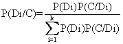 从条件概率的定律可以延伸出一个Bayes逆概率定理: 设事件D1,D2,D3,… Dn是互不相容的事件,设事件C跟这K个D事件中的第一个Di事件有关联,则各Di(i=1,2,……k)的条件概率为:
