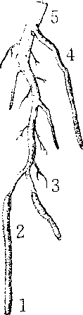 生长根 1.根冠 2.生长根 3.吸收根 4.过渡根 5.输导根 |
