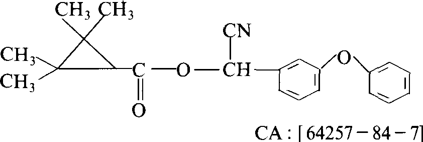 性能 纯品为白色结晶,熔点49~50℃,原药为棕黄色固体,有效成分含量90%以上,熔点45~50℃,20℃时蒸气压为7.3×10-4帕,密度d254 1.150。对光、热稳定,酸性介质中较稳定,碱性介质中易分解,常温下密闭贮存较稳定。难溶于水,易溶于甲醇、环己酮、卤代烃、脂肪烃、芳香烃等有机溶剂。对高等动物毒性中等,原药对大鼠急性经口LD50为70.6毫克/千克(雄)、66.7毫克/千克(雌),对兔急性经口LD50为675毫克/千克(雄)、510毫克/千克(雌),对大鼠急性经皮LD50为1000毫克/千克(雄)、870毫克/千克(雌),对兔急性经皮LD50为2000毫克/千克,对大鼠急性吸入LC50大于96毫克/米3。在试验剂量内对试验动物未发现致畸、致突变和致癌作用。对鱼类等水生生物、蜜蜂、家蚕高毒,对鸟类低毒。杀虫活性高,属神经毒剂,具有触杀和胃毒作用,有一定的驱避作用,无内吸传导和熏蒸作用。残效期较长,对防治对象有过敏刺激作用,驱避其取食和产卵,低温下也能发挥较好的防治效果。杀虫谱广,对鳞翅目、同翅目、半翅目、双翅目、鞘翅目等多种害虫有效,对多种害螨的成螨、若螨和螨卵有一定的防治效果,可用于虫、螨兼治。 应用 加工成乳油、可湿性粉剂等剂型使用。主要用于棉花、蔬菜、果树、茶树、花卉等作物,防治各种蚜虫、棉铃虫、棉红铃虫、菜青虫、甘蓝夜蛾、桃小食心虫、柑桔潜叶蛾、茶尺蠖、茶毛虫、茶小绿叶蝉、花卉介壳虫、毒蛾等。可兼治多种害螨,因易产生抗药性,不作为专用杀螨剂使用。施药时喷雾要均匀,对钻蛀性害虫应在幼虫蛀入作物前施药。残效期一般在10天左右。 甲氰菊酯fenpropathrin又称灭扫利、meothrin。一种杀螨杀虫剂。化学名称:α-氰基-3-苯氧基苄基-2,2,3,3-四甲基环丙烷羧酸酯。化学结构式如下。原药棕黄色液体,密度1.15(25℃)、熔点45~50℃,25℃时蒸气压1 298.56×10-6 Pa。不溶于水,溶于二甲苯、环己烷等溶剂。中等毒性,大鼠口服LD50为70.6~164 mg/kg,兔经皮LD50为2 000 mg/kg。对鱼高毒。可防治棉叶螨、山楂叶螨、柑橘叶螨、温室粉虱、二点叶螨、桃蚜、桃小食心虫、橘蚜等。