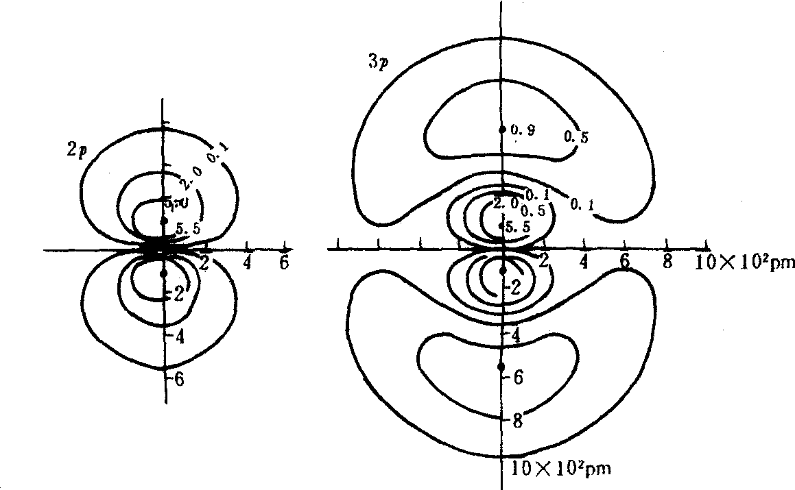 图1 2p,3p电子云的等密度面图