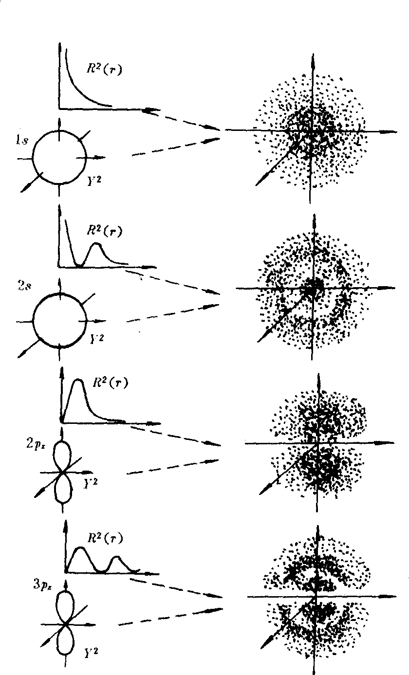 图6 氢原子几种电子云分布图(黑点图)