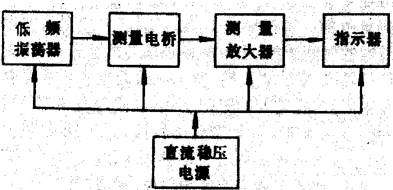 图1 示波器典型结构框图 示波管是示波器的核心部件,示波器的电路结构是为了满足示波管的工作需要而设计的。 信号发生器 在无线电和电子技术领域中,经常需要使用各种频率、各种波形和各种幅度的信号源,用于测试、调整和检修工作。信号发生器可分为低频信号发生器、高频信号发生器、超高频信号发生器和脉冲信号发生器等。低频信号发生器是用来产生1赫~1兆赫正弦波信号的仪器。它由文氏电桥振荡器、衰减器、电压表及直流稳压电源构成。有的低频信号发生器还设置功率放大器、衰减器、输出匹配变压器及功率放大器保护电路,这种信号发生器除了电压输出外,还可提供功率输出。 专用电子仪器 为适应专业需要而设计的测试仪器。如用于粮食贮藏部门的粮食湿度测量仪(图2),由低频振荡器、测量电桥、测量放大器、指示器和电源组成。振荡器产生频率为1400赫,输出电压的峰值可达10伏的低频正弦波信号。测量电桥由传感器、电容器、电阻和电位器组成。当振荡器输出电压一定时,调节电位器和可变电容器,可使电桥达到平衡状态。电桥的不平衡输出信号能线性地反映粮食的湿度。电桥的不平衡输出经测量放大器放大后,由指示器直接读出粮食湿度。