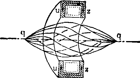 图1 光镜和电镜对比示意图 电子束和电子透镜与光类似,电子也具有波动性和粒子性,在真空中相对集中,而高速运动着的电子流称为电子束。电子是带负电荷的粒子,它的运动受所处磁场和电场强度的影响,而改变其行进方向。当线圈中通以电流时,线圈周围形成磁场,从线圈中心轴某一点发出的电子,在磁场中沿螺旋线轨迹前进(图2),然后会聚在