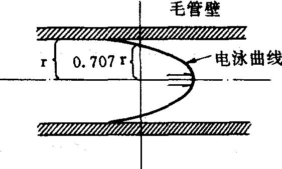 毛管内电渗情况只照明这一层,使该层中的胶粒易于辨别。如果使用矩形电泳池,则其中静止层的位置与电泳池的宽厚比有关。宽厚比大于40的电泳池,静止层在电泳池中央轴的平面算起的0.518半高处,也有上下两处静止层可利用。把显微镜物镜聚焦在静止层中,则可直接测出一定电位梯度直流电下的胶粒的电泳速度,据当时的温度查出粘度,按Helmholtz-Perrin公式即可求得ζ-电位。