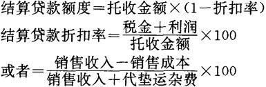 第四,按企业财务收支计划确定贷款的偿还期限。在企业财务计划中,包括有物资储备的增加和减少。物资储备增加,企业需要增加贷款;物资储备下降,则应归还贷款。因此,可根据企业财务收支计划规定的分月减少的资金项目,确定分批的具体偿还期限。 第五,按销售合同规定的交货日期,确定贷款的归还期限。在企业的销售合同中,要具体规定产品的交货日期,企业销售商品后,便可收回货款,归还银行贷款。因此,在实际工作中,可以把产品交货期限作为贷款的归还期限。 按照银行规定,临时贷款的期限,一般不得超过6个月。 生产周转贷款和临时贷款,是在银行统一管理流动资金以后,银行对工业企业发放的主要贷款。现在取消了原来的以超定额物资储备为对象的超定额贷款,以及以企业定额内流动资金为对象的定额流动资金贷款。 D.贷款的申请、发放和收回当前各个银行的具体做法不尽相同,通常有两种方法。一种是企业借款计划代替借款申请,银行审核同意后,即将贷款额全部贷给企业,并转入企业存款户周转使用,确定贷款期限1年,待下年度贷款计划额确定后,借新还旧,调整贷款余额。另一种是,企业年度借款计划核定后,必须在批准的计划额度内,按实际需要逐笔提出借款申请,由银行审查同意后确定期限,按期归还,实行逐笔核贷。前者适用于生产经营较为正常的企业,可以简化贷款手续;后者适用于生产经营不够稳定,或者不经常有贷款的企业,便于加强日常对贷款的管理监督。 ❷ 结算贷款 结算贷款是银行对工业企业的在途资金占用发放的流动资金性质的贷款。在实际经济生活中,根据不同的结算方式,在途资金表现为两种不同的形式。1是占用在发出商品形态上的在途资金,2是占用在采购货币形态上的在途资金。根据我国现行的规定,银行只对销货单位采用托收承付结算方式的发出商品占用的在途资金,发放托收承付结算贷款。这是因为,企业在发出商品后,通过银行收回贷款往往要经过一段时间,在这一间隔时间内,企业要为发出的在途商品垫支资金——在途资金。当企业感到资金不足时,可向银行申请结算贷款,经银行同意后发放。 A.企业办理结算贷款的条件。结算贷款是对在途资金占用发放的贷款。但是,并不是企业所有在途资金都可以申请结算贷款,银行发放结算贷款需要具备有一定条件,主要包括下列方面: 1是只有使用托收承付结算方式形成发出商品的在途资金占用,才能取得结算贷款。企业办理贷款时,要以委托银行收款凭证作为依据。 2是企业办理托收承付结算贷款,必须向银行提交有关运输部门的的运单,或购货单位的提货单据,能够证明企业确已按合同或有关协议发货。 3是企业发出商品以后,3天之内必须办理托收,委托银行收回货款,才能办理托收承付结算贷款。如果逾期,企业可以办理托收,但银行不再发放结算贷款。特殊情况下经银行同意可适当延长期限。 B.贷款额度的确定。托收承付结算贷款的额度,以销货方为购货方实际垫支的资金为限度,即发出商品的成本加上代垫运杂费的合计数。可是企业提交银行的托收凭证金额,均包含有商品的税金、利润在内,而税、利要在企业收回货款后才按规定上交财政,实际没有占用企业的资金。所以,按托收凭证金额计算结算贷款额度时,应从中扣除税、利部分。在实际工作中,为了简化每笔结算贷款的扣除计算手续,通常采用托收承付结算贷款“综合折扣率”的方法进行计算。其计算公式是: