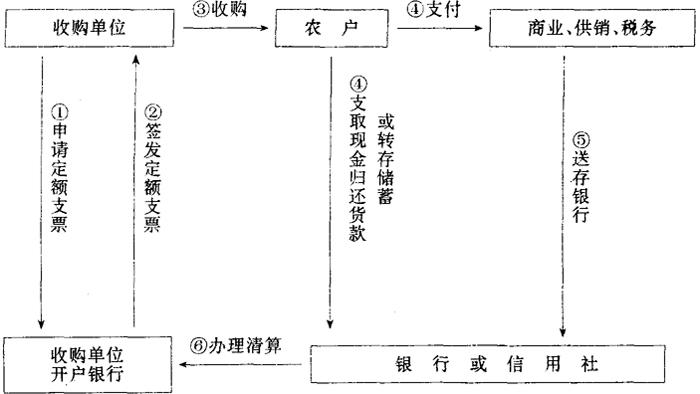 定额支票是收购单位将款项交存银行,由银行交其用于向农户支付收购农副产品款项的票据。定额支票不记名,不挂失。收购单位在结算农副产品价款时,是支付现金,还是使用定额支票,由农户自由选择。 农户可凭定额支票向银行或信用社兑付现金,归还贷款,转存储蓄,还可用于交纳农业税、支付承包金和向当地商业、供销部门一次购买商品,超过规定有效期的,银行自签发日按照定活两便储蓄利率计息。定额支票使用方便,既可减少农户清点、携带现金之不便,又可减少收购旺季对现金需求的压力,节约现金使用。 定额支票处理程序如下: