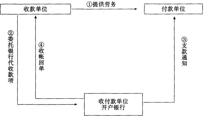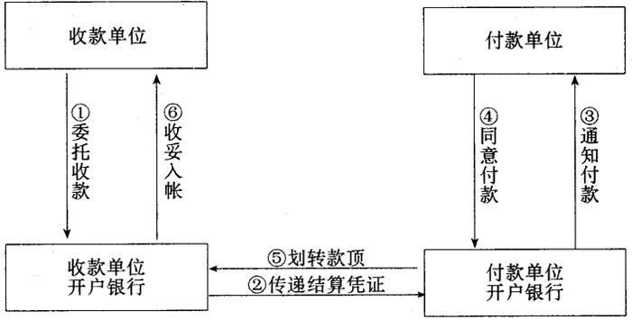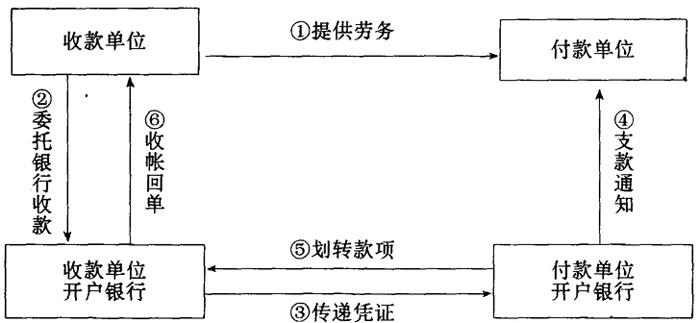 (6)委托收款 委托收款是收款人委托银行向付款人收取款项的结算方式。凡在银行或其他金融机构开立帐户的单位和个体经济户的商品交易,劳务供应以及其他应收款,只要向银行提供收款依据,均可使用委托收款结算方式。委托收款在同城、异地均可办理,分邮寄和电报划回两种,不受金额起点限制。付款单位拒绝付款的,银行不负责审查拒付理由;付款单位如无足够资金支付的,银行即将结算凭证退回收款银行转交收款单位,不负责代扣款项。这种结算方式能适应多种经济往来的需要,具有灵活、方便的特点;但对较大金额的商品交易,不宜采用,以免影响资金周转。 委托收款处理程序如下图: